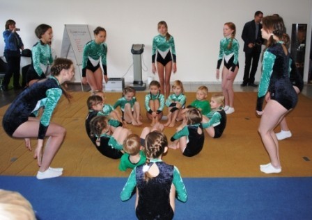 Die vielen Wochen der Proben sollten nun, zur Eröffnung der Gesundheitsmesse der Novitas BKK im "Haus der Balance", ihr Ende finden. Unser neu einstudiertes Schauturnprogramm, das auf der Grundlage des Titels der Toten Hosen "Tage wie Diese" entstand, erlebte seine Uraufführung. Dazu passend durften die Kinder erstmals unsere neuen grün-schwarz-weißen Wettkampfanzüge tragen.