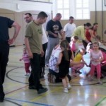 Nach einer gemeinsamen Erwärmung hatten die Mannschaften Zeit, an 12 Stationen Aufgaben aus den Bereichen Geschicklichkeit, Konzentration, Fitness und gesunder Ernährung zu lösen. Dazu gehörten unter anderem: verschiedene Bälle in Reifen werfen, zwischen gesunder und ungesunden Nahrungsmitteln zu unterscheiden und Balancierübungen. Zum Abschluss galt es noch, gemeinsam einen Geschicklichkeitsparcour zu durchlaufen. Ein kleiner Imbiss verkürzte die Wartezeit bis zur Siegerehrung, bei der die sportlichsten Familien geehrt wurden. Dank der Unterstützung durch die Brötchen- und Kuchenschmiede Spergau, die Saalesparkasse und die NOVITAS BKK erhielten auch alle anderen Mannschaften, neben einer Urkunde, kleine Preise.