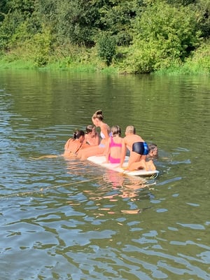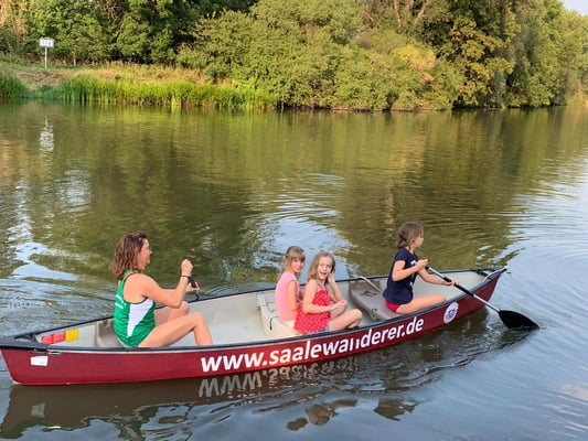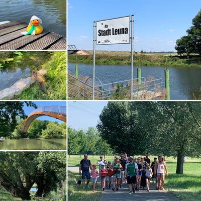 Bei schönstem Wetter wanderten wir am 24.08.2019 von der Turnhalle in Leuna zum Gelände der Wasserwanderer nach Merseburg. Pünktlich um dreizehn Uhr verließ die Wandergruppe den Schulhof mit lautem Gesang und viel guter Laune. Auch unterwegs erklangen viele Melodien, die alle zum Mitsingen anregten. Nach etwa eineinhalb Stunden kamen wir, etwas verschwitzt, auf dem Gelände an der Saale an. Nach dem Kaffee und Kuchen wollten sich alle in der kühlen Saale erfrischen, eine Runde mit dem Boot auf der Saale fahren oder Federball spielen. So gestaltete sich der Nachmittag recht kurzweilig. Am Abend wurde noch gegrillt und der Abend klang gemütlich aus.