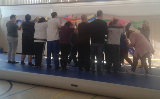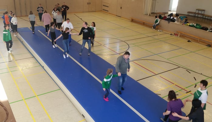 Am 15.02.2019 besuchten die Mitglieder der Tagesgruppe des Paritätischen Wohlfahrtsverbandes in Leuna die Turnerinnen und Turner des Sportvereins Chemie Leuna. Zuerst stand für die Kinder und Erwachsenen eine gemeinsame Sportstunde auf dem Programm.Mit viel Ehrgeiz wurden die verschiedenen sportlichen Aufgaben auf der AirTrack-Bahn von allen gemeinsam bewältigt. Besonders schön war zu beobachten, dass weder Vorurteile noch Berührungsängste eine Rolle spielten, sondern einfach der Spaß an der Bewegung im Mittelpunkt stand.
